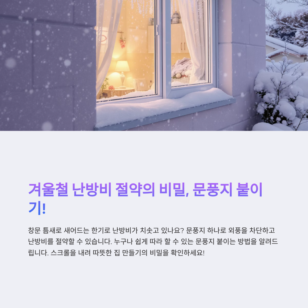 | 경제적 효과 | 외풍 차단을 통해 가스비를 절약함으로써 가계 경제를 보다 효율적으로 관리할 수 있습니다. |