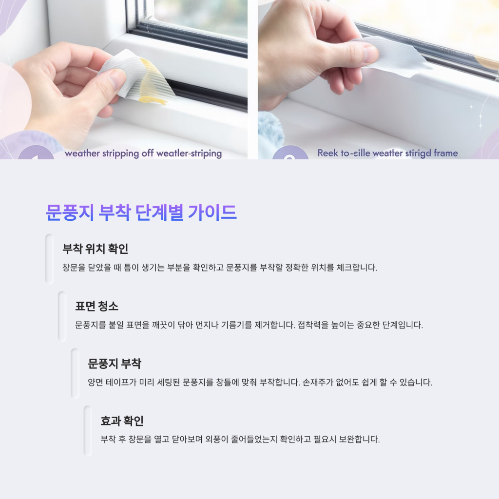 창문 문풍지를 부착하는 과정은 간단하면서도 효과적입니다.